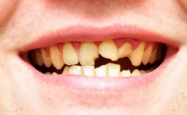 🔹 Multiple decayed, broken, or missing teeth.